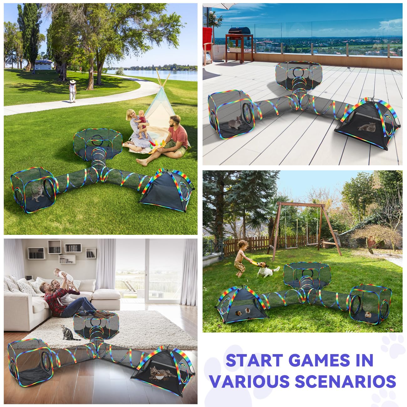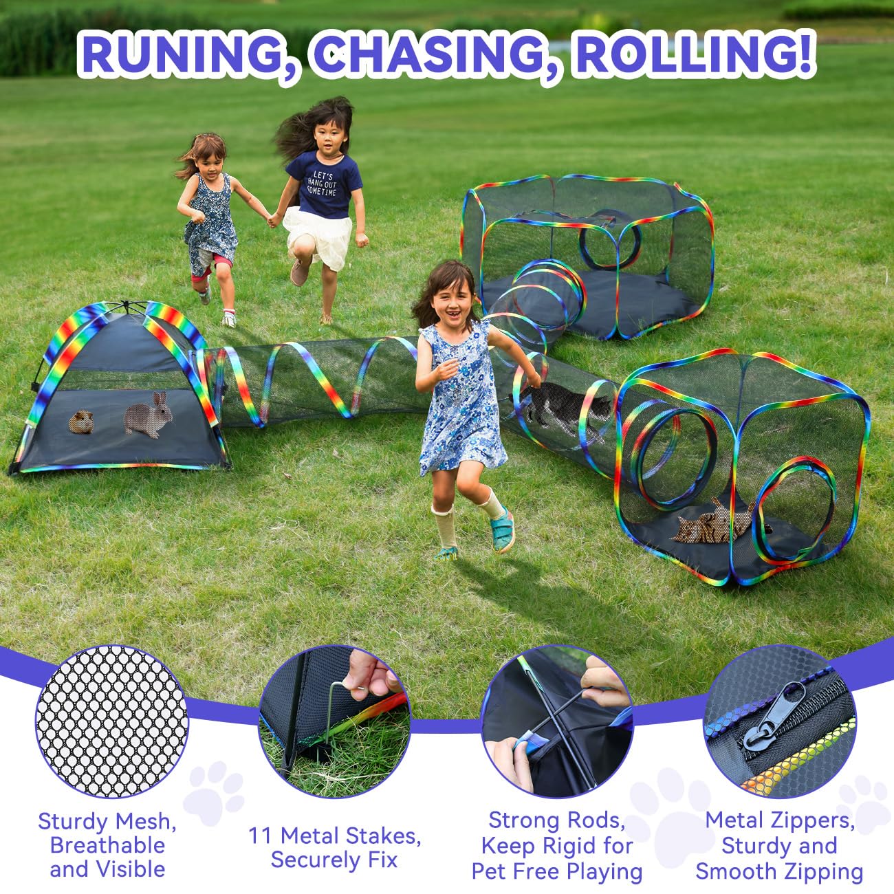 - 【Indoor & Outdoor & Patio Play】 The pet tent tunnel toys allow pets to exercise and play indoors, relieving their boredom and anxiety. Portable pet playpen is perfect for use outdoors, such as in a yard, lawn, park, balcony, patio, picnic, beaches, or trips.